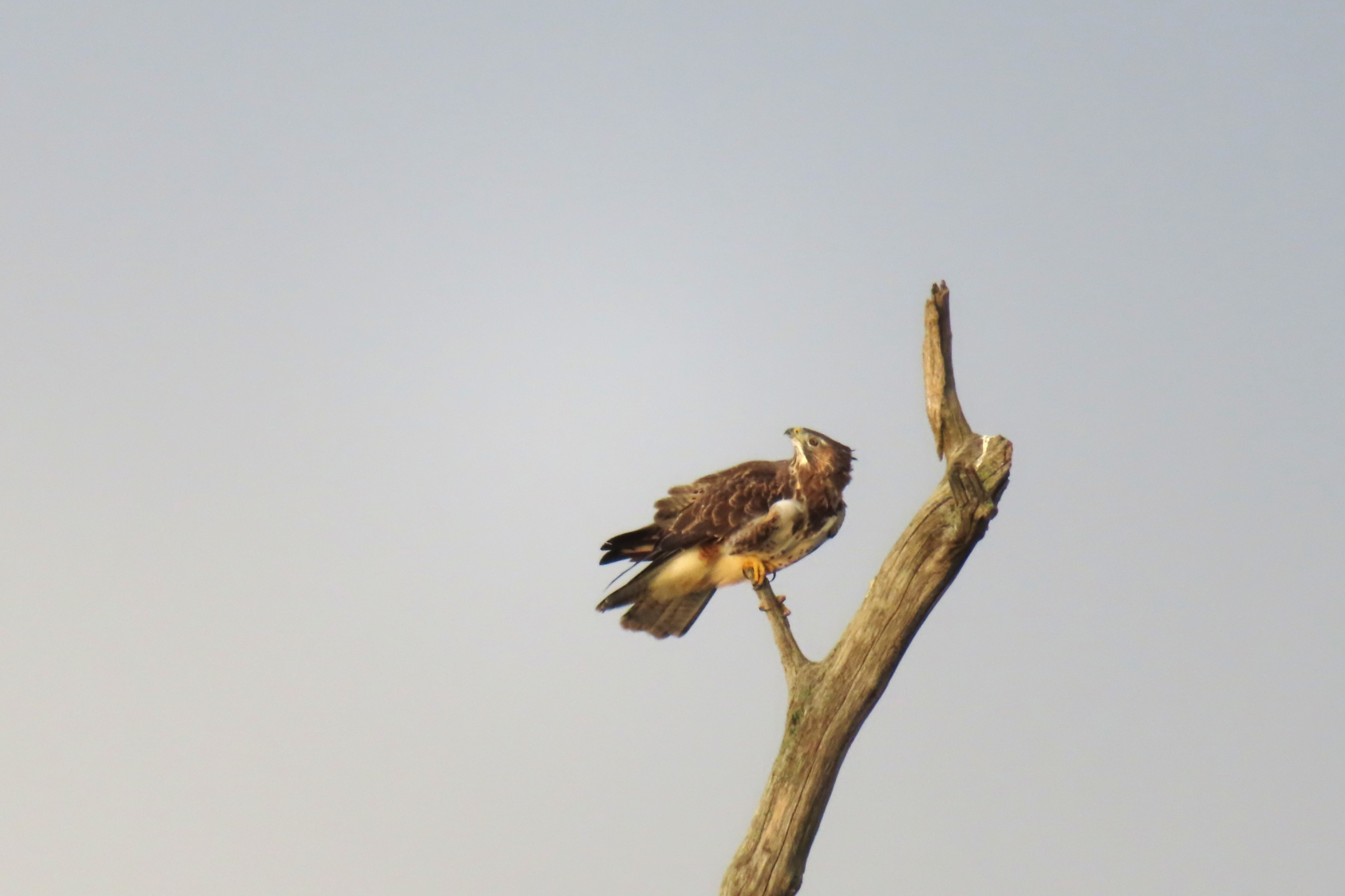 Ja eindelijk! Het was s ochtends vroeg op een druilerige dag, dus geen mooi licht. Maar na wat geduld ging hij wel mooi zitten op deze dode boom 😄